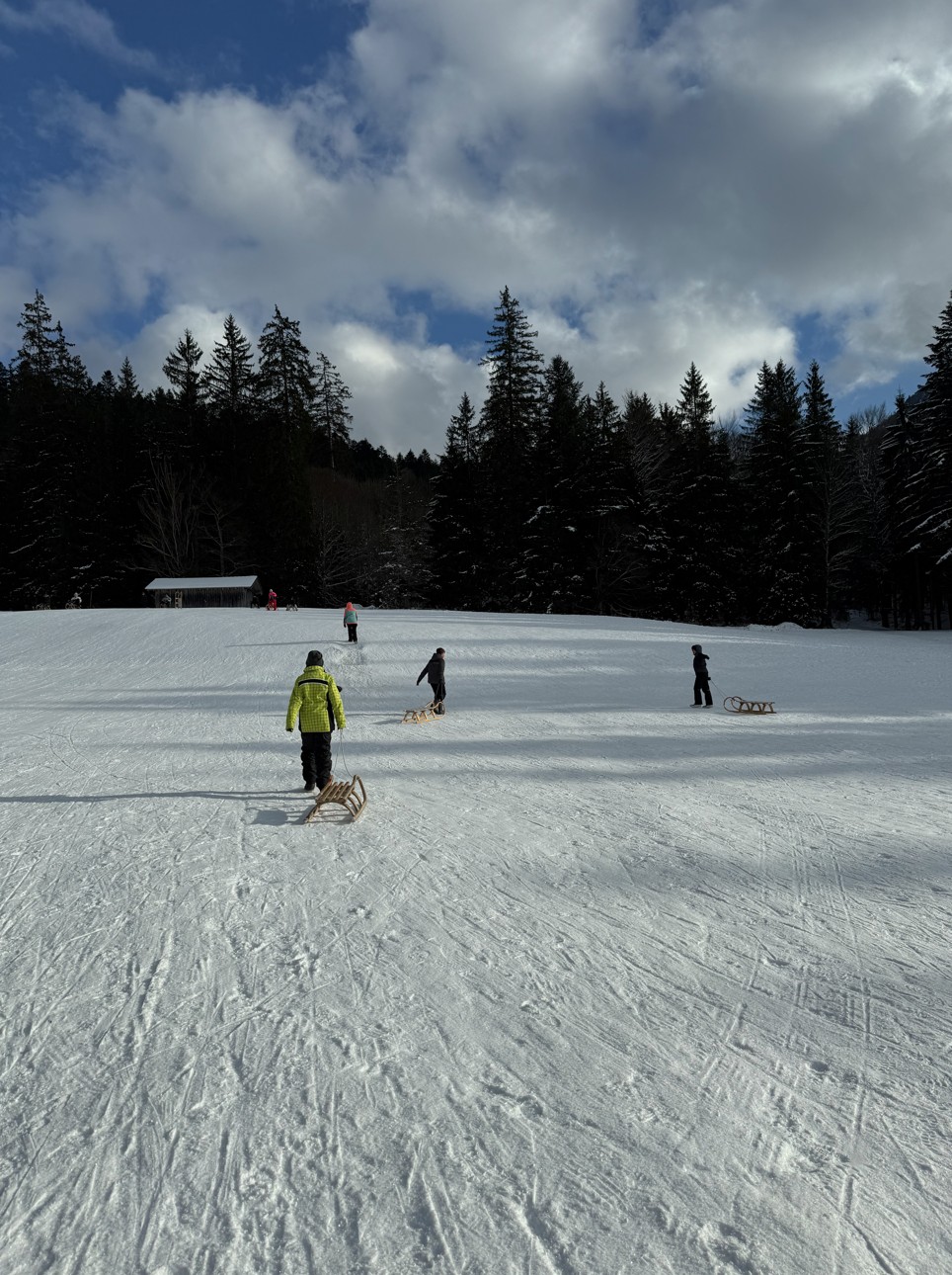 Anschließend kehrte die Klasse in der Gaststätte ein, um sich aufzuwärmen und gemeinsam zu essen. Den Abschluss bildete fröhliches Rodeln am Rodelberg, bei dem Bewegung, Spaß und Gemeinschaft im Mittelpunkt standen.