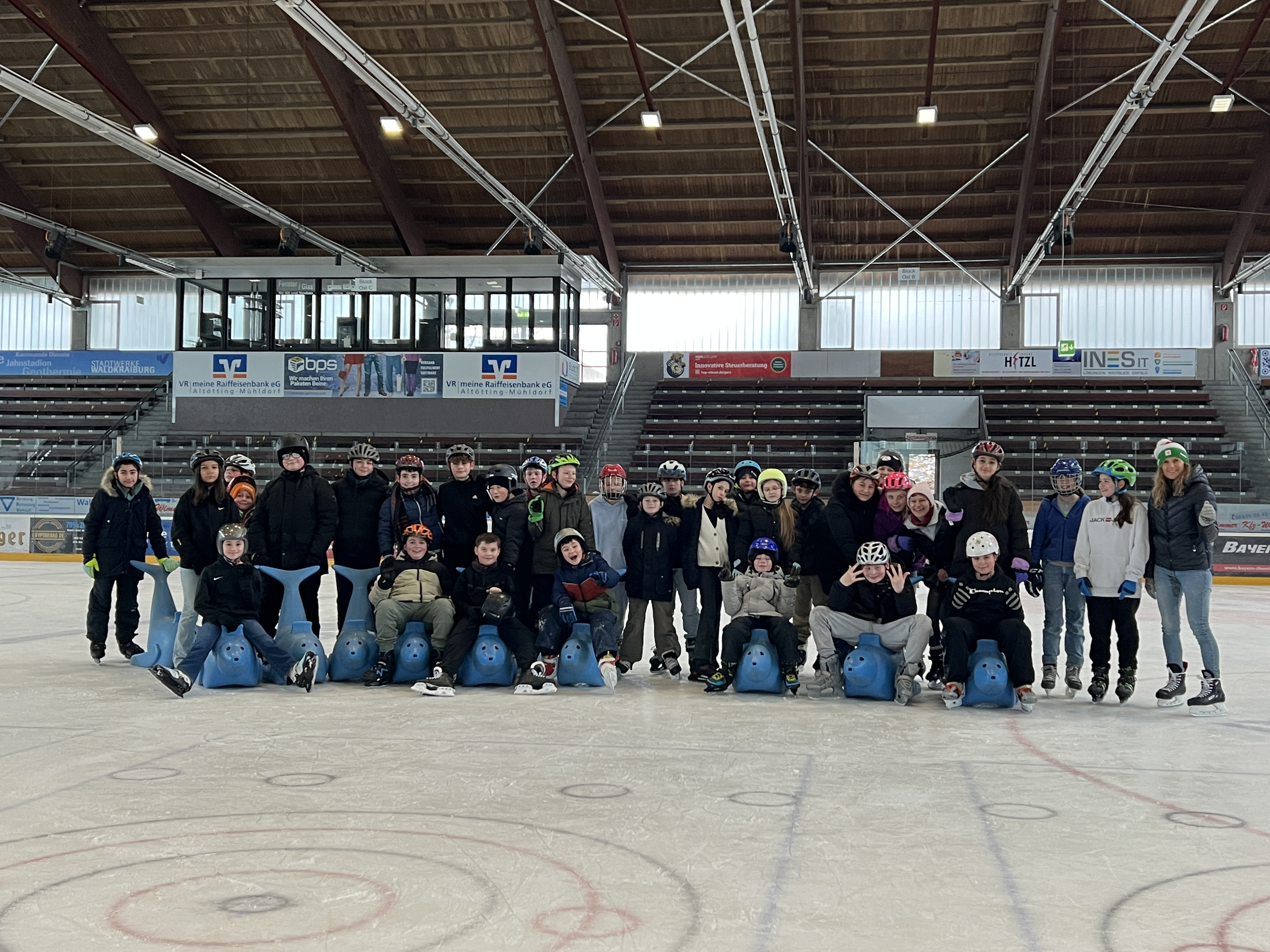 Viel Spaß hatten die Klassen 5b und 5c beim gemeinsamen Eislaufen als besondere Belohnung für fleißiges Lernen.